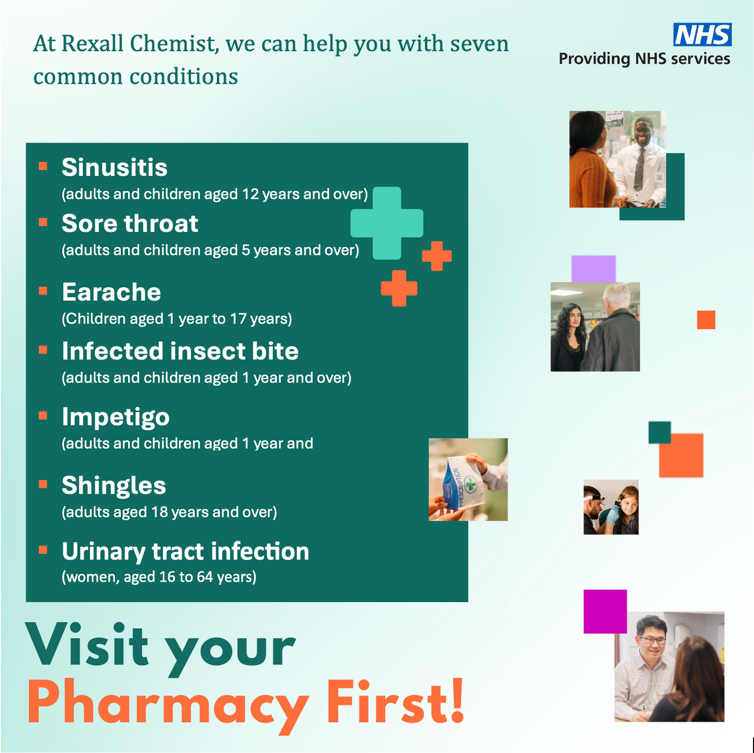 Pharmacy First will enable community pharmacists to supply prescription-only medicines, including antibiotics and antivirals where clinically appropriate, to treat seven common health conditions without the need to visit a GP.